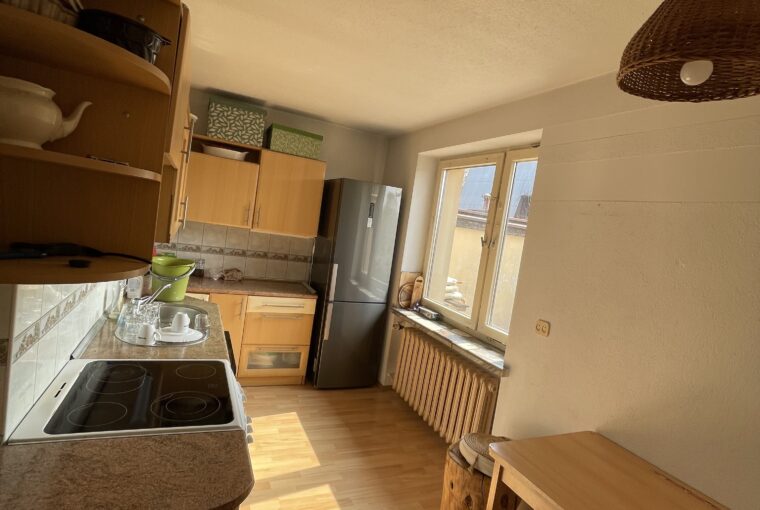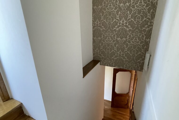 Nieruchomość murowana z pomieszczeniami gospodarczymi i garażem w bryle budynku(około 50-60m2), dach dwu-spadowy  pokryty papą termozgrzewalną ocieplony wełną 30-40 cm, okna drewniane wymagają wymiany lub uszczelnienia, strop betonowy. Układ domu pozwala na zamieszkanie dwóch rodzin – klatka schodowa jako część wspólna. Ogrzewanie centralne miejskie, ciepła woda z sieci.
