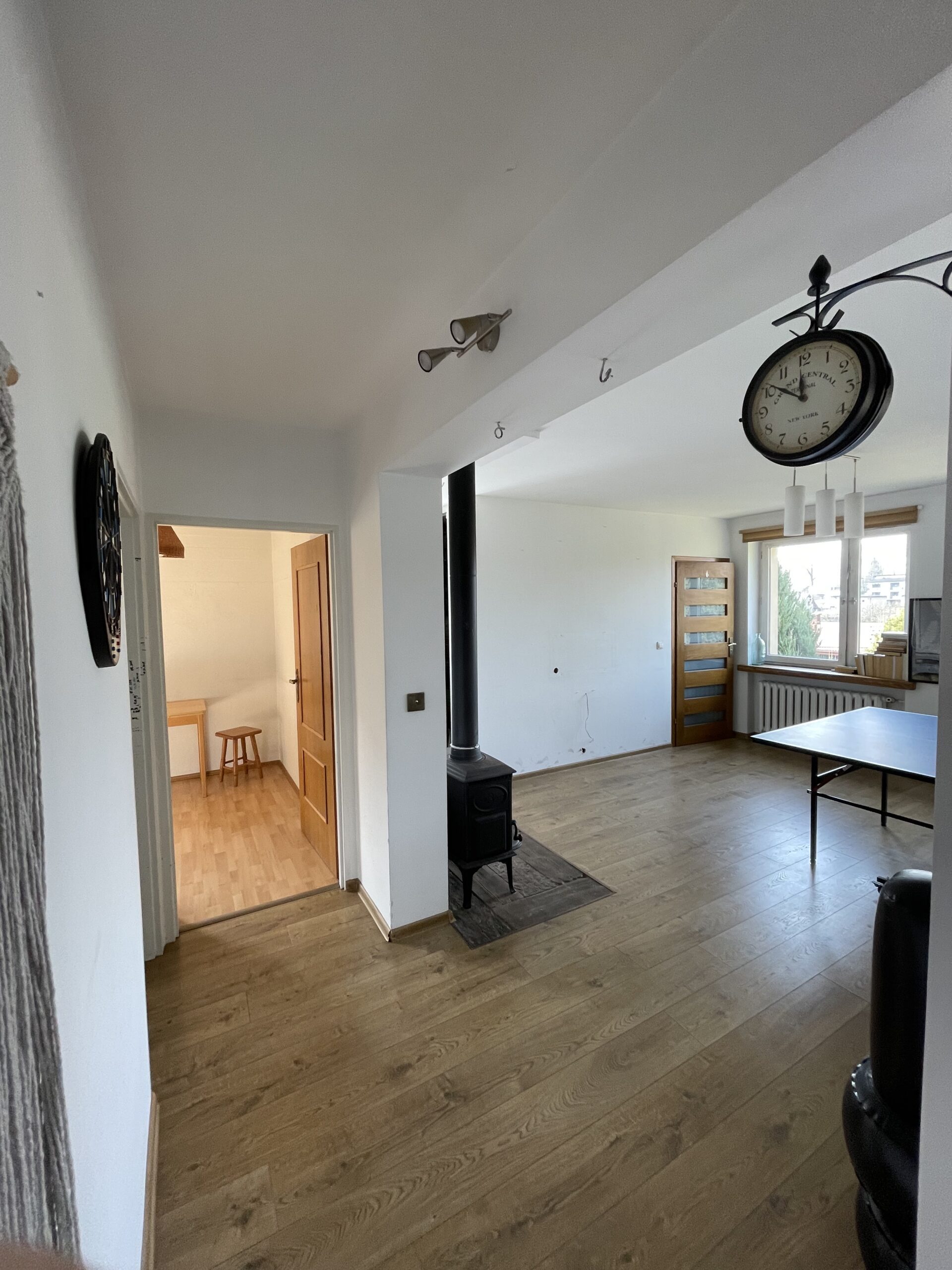 Duży przedpokój z kominkiem