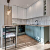 -salon z aneksem: zabudowa kuchenna wraz z sprzętem AGD(zmywarka, lodówko-zamrażarka, płyta indukcyjna, okap, piekarnik, zlewozmywak z baterią, wentylacja)