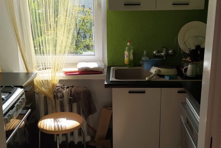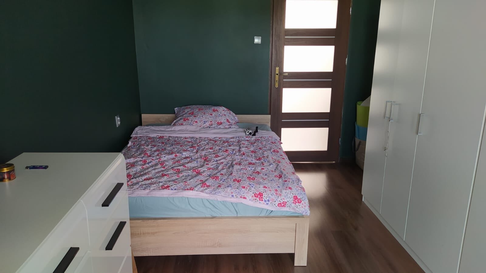 w pokojach ułożone panele w kuchni kafelki.
